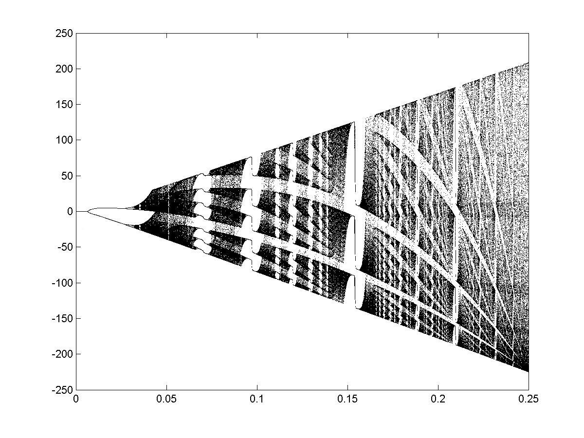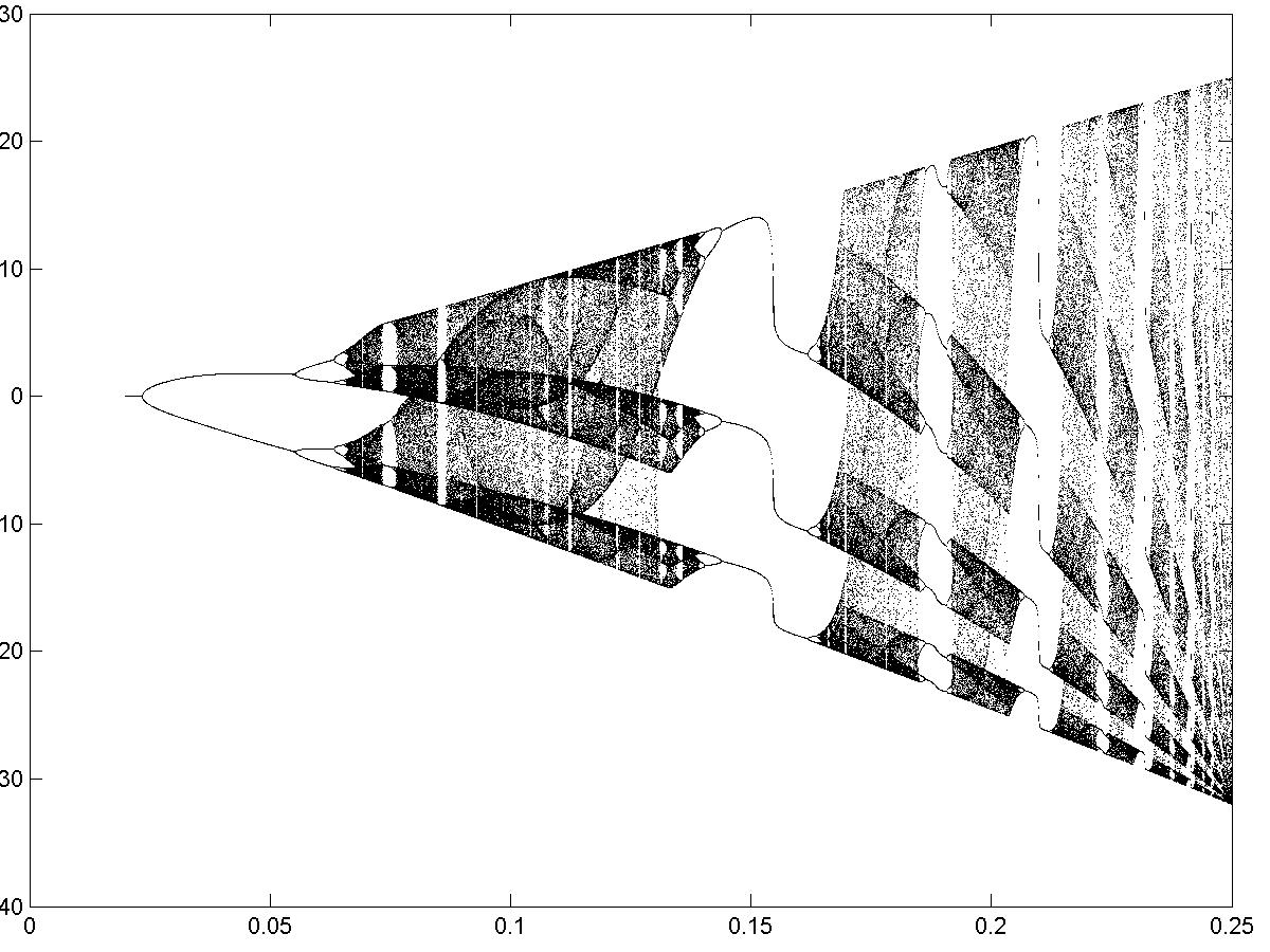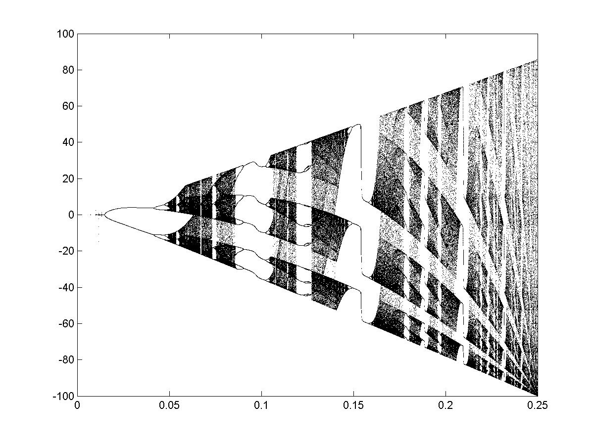 w-> w + A (exp(-w)-1). Its bifurcations are shown below: